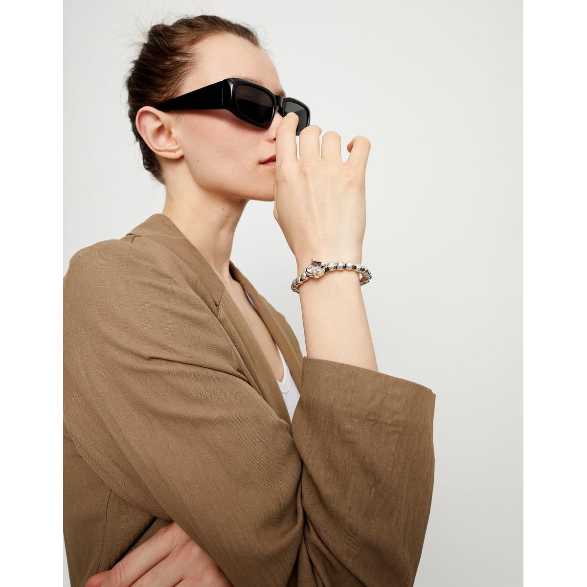 The bracelet represents the perfect fusion between the firm and the fragile, where the solidity of the silver enhances the sweet luminosity of the crystal.