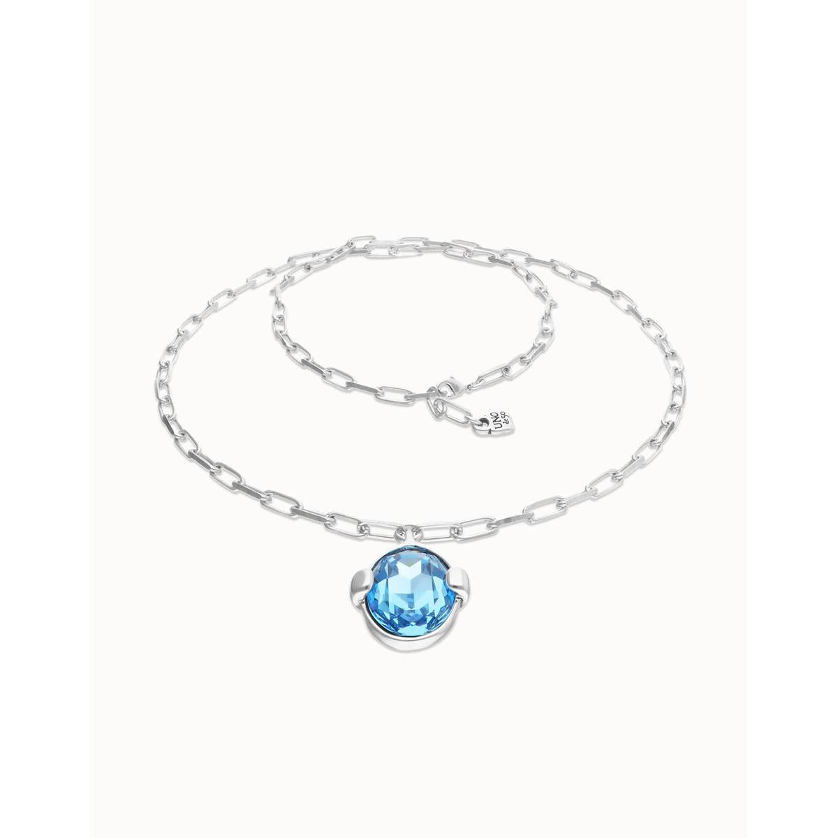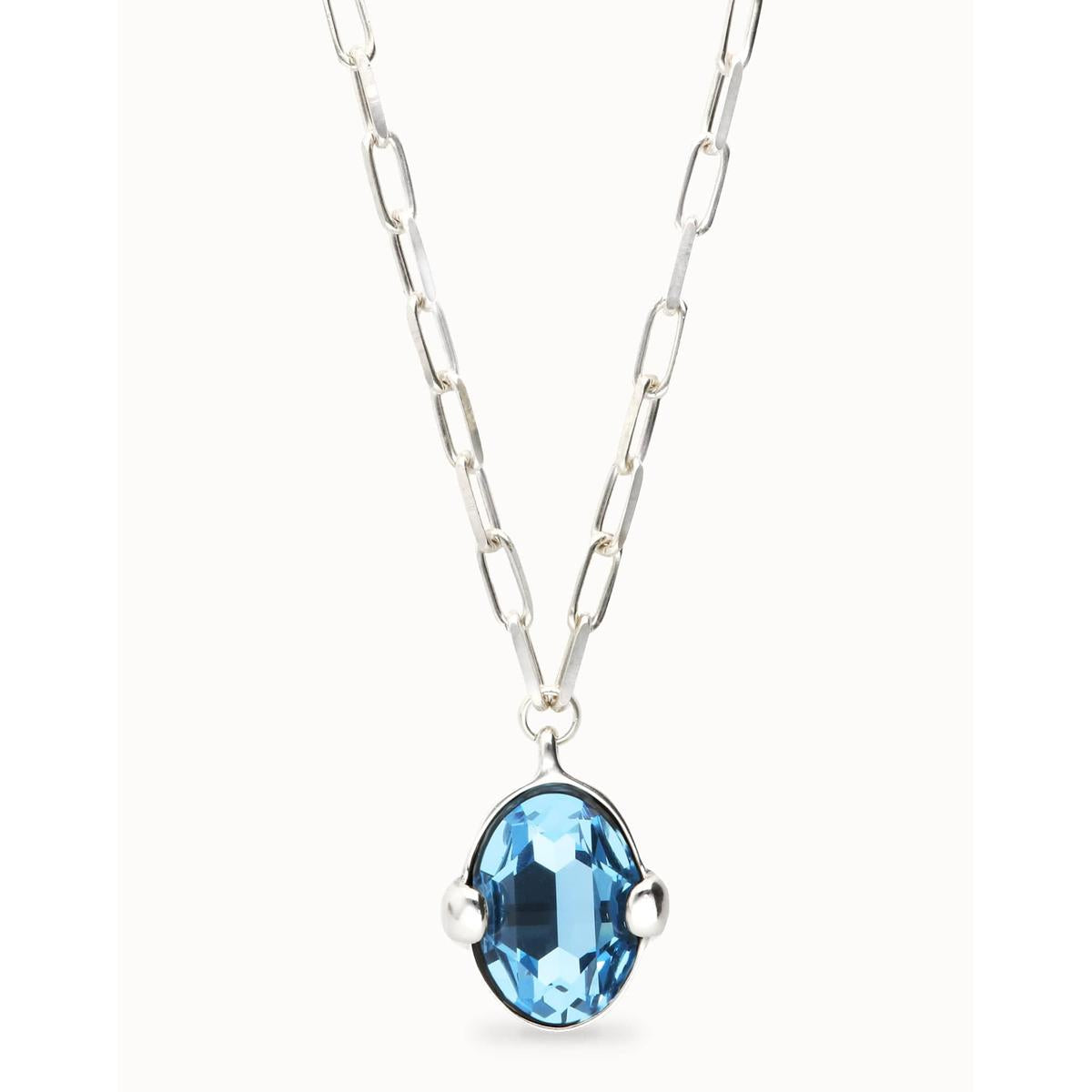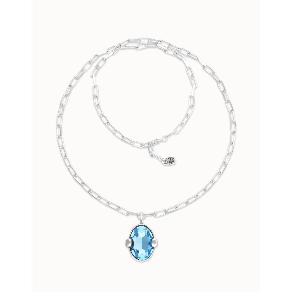 Ser Deslumbrante Large Blue Oval Faceted Crystal Long Silver Plated Necklace - COL2031AZUMTL0U