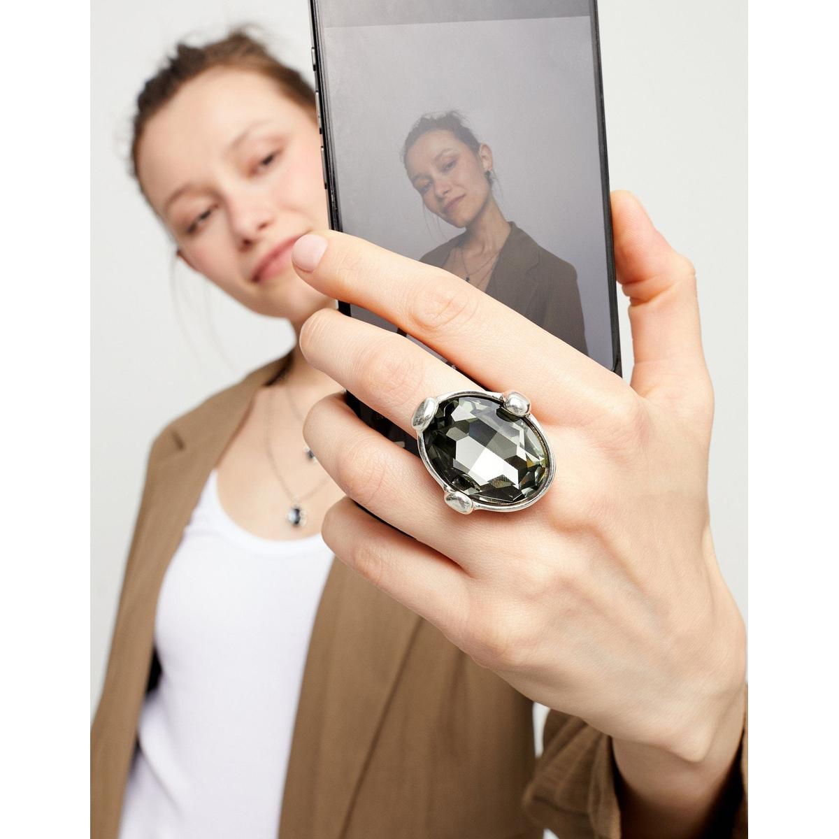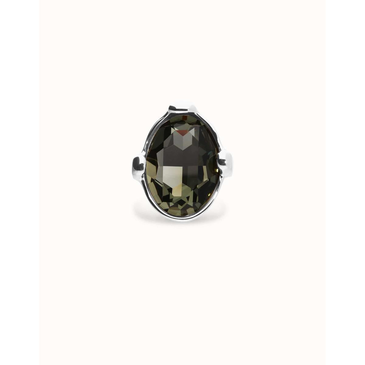 Ser Deslumbrante Grey Oval Faceted Crystal Large Silver Plated Ring - ANI0851GRSMTL