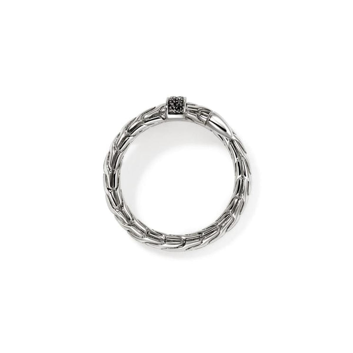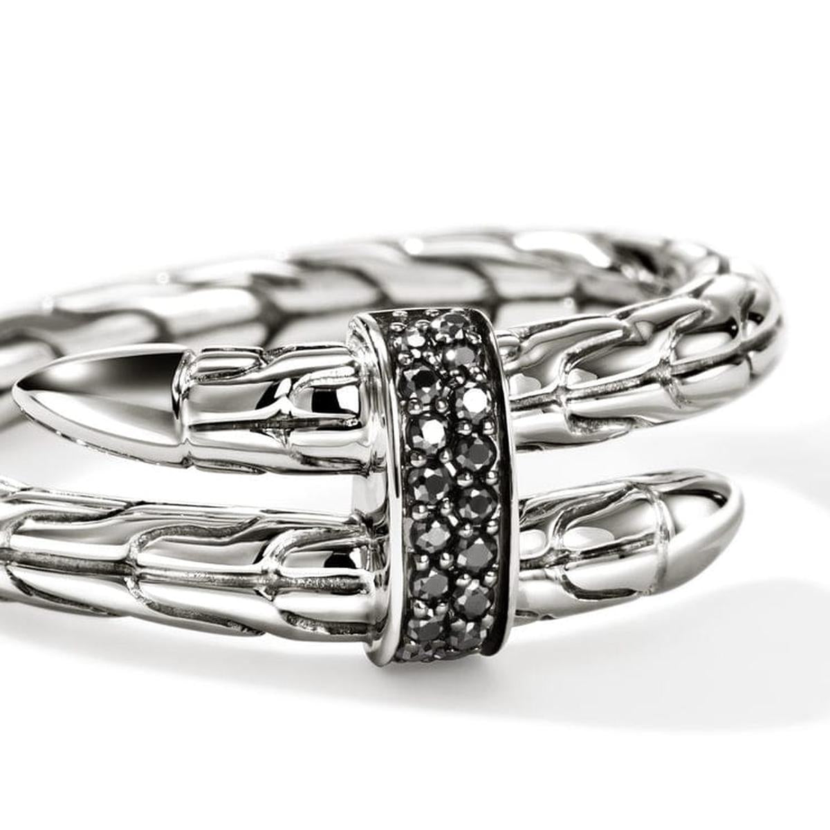 Elegance and edge. This coiled ring is artisan handcrafted in reclaimed sterling silver with ethically sourced black sapphires.