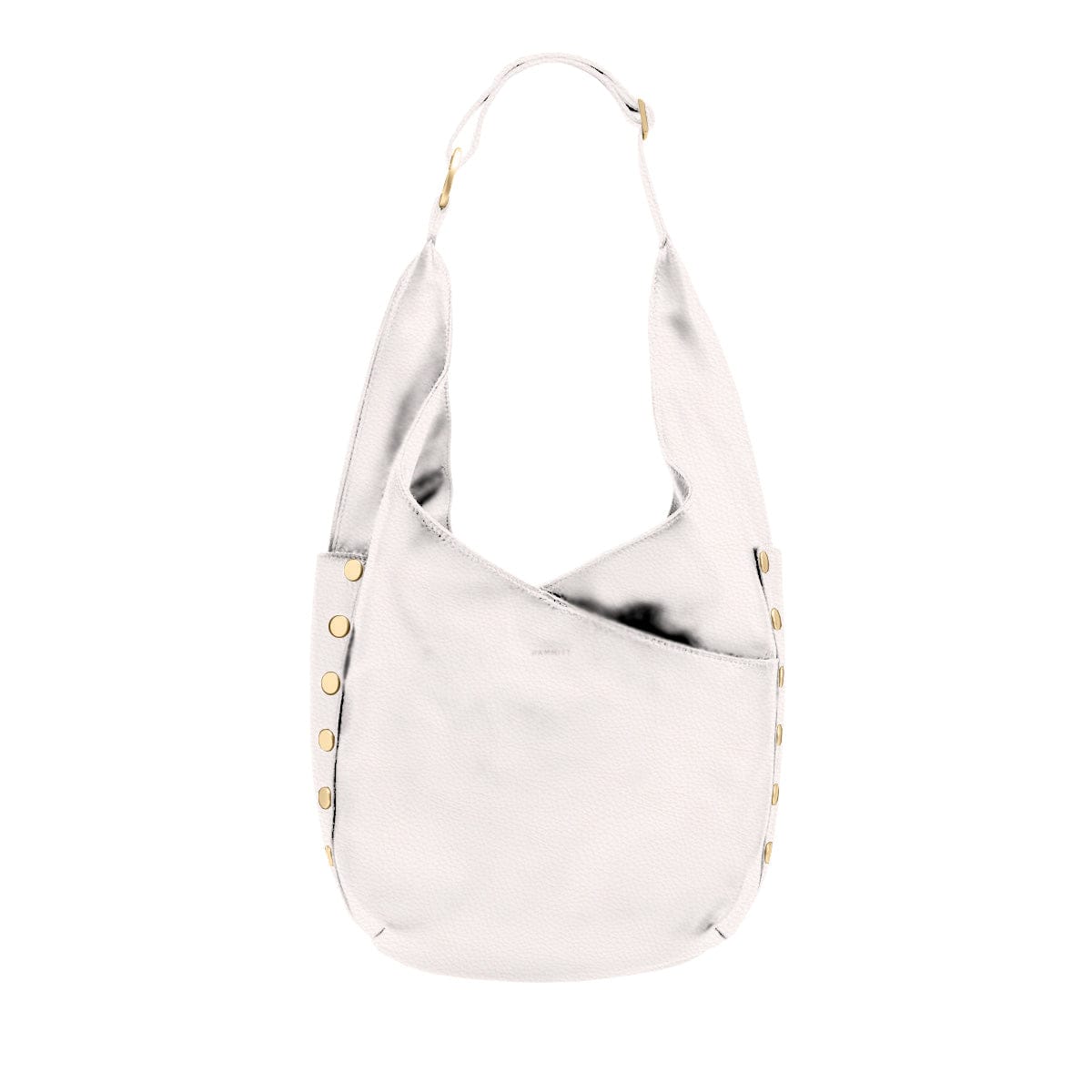 - Exterior: side panels, crisscross drop pockets on front and back panels, adjustable shoulder strap with large O ring, slit detail sides of bag, zippered main compartment