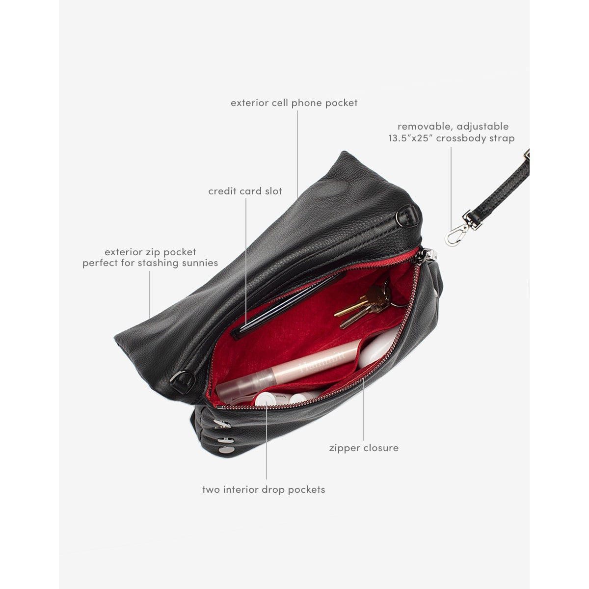 Because you're a VIP. Our all-time best-seller, this VIP in buttery black leather features an optional strap and elevated brushed gold rivets. Plus, you'll find a subtle strip of red peeking out along the bag's back seam. We're classy like that.